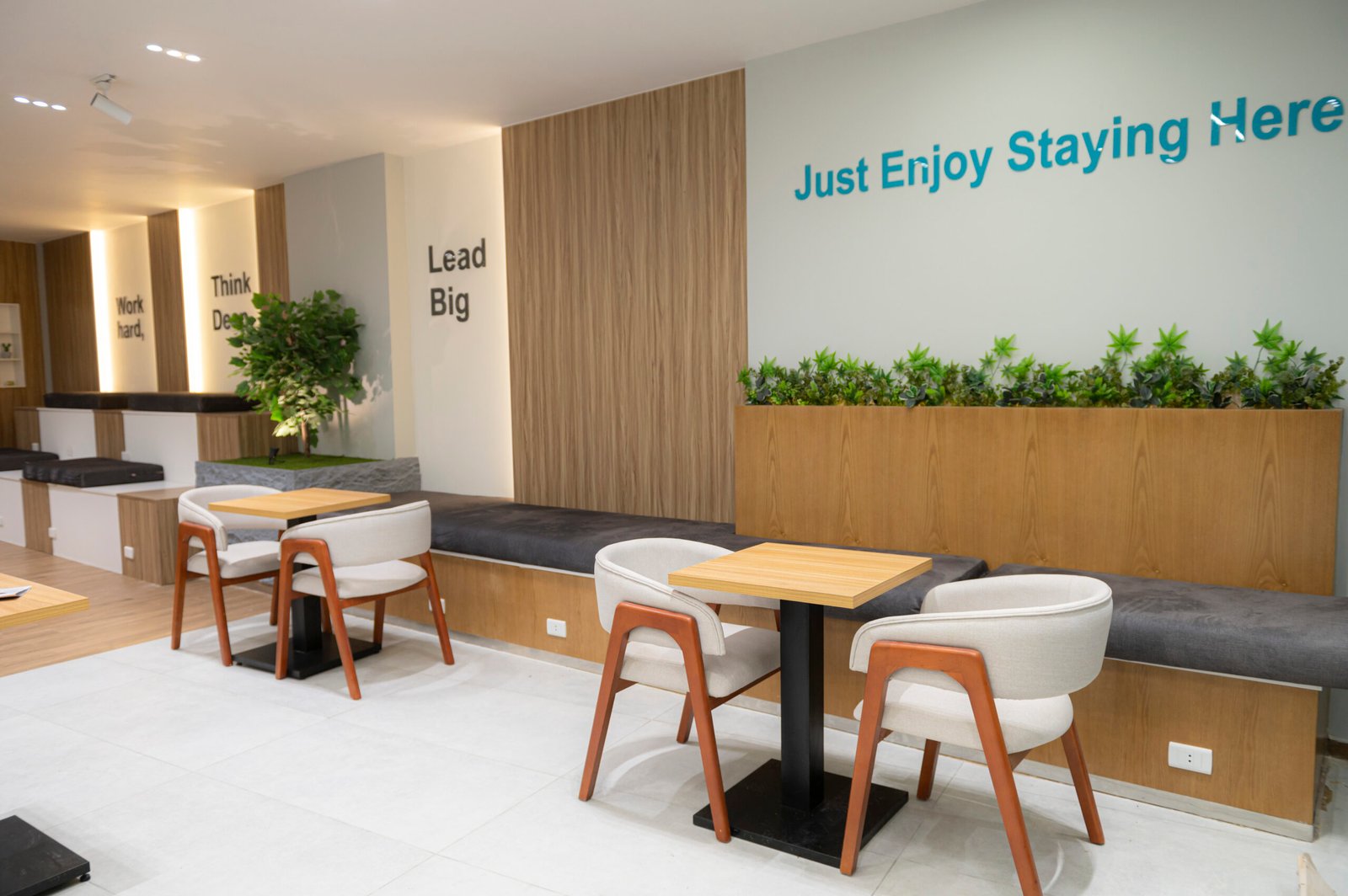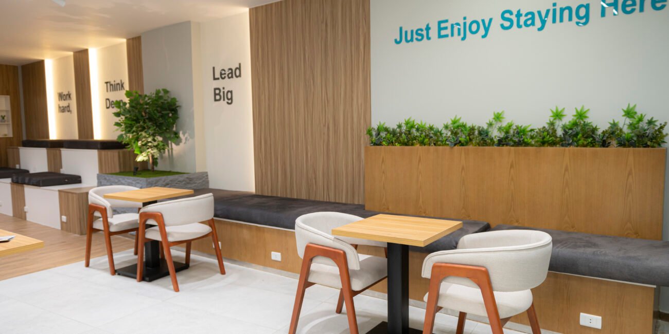 The café lounge offers standard tables, cozy corners, and access to 12 dedicated workstations for freelancers who need a more focused setup. Every spot is within reach of power outlets and high‑speed Wi‑Fi, with the option to step out to the terrace when you want fresh air.