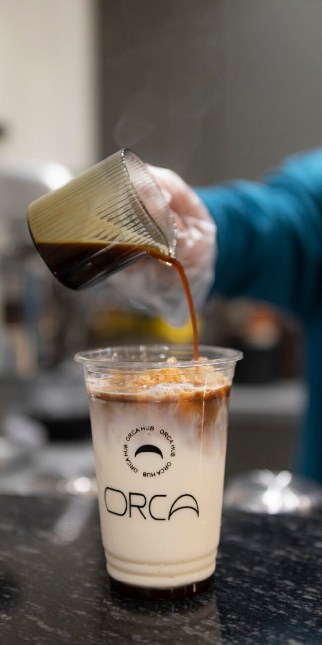 Orca Café Lounge is set up for study sessions, casual meetings, and after‑work hangs, with barista‑made coffee, snacks, and strong Wi‑Fi throughout.